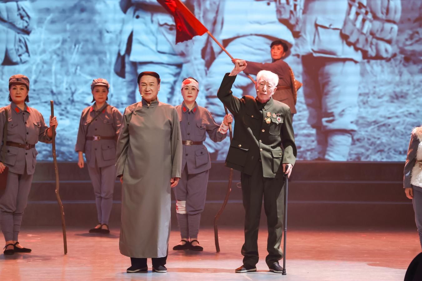 活动执行团队紧紧围绕“红色文化传承与青年思政教育”深度融合的核心目标,在极短时间内完成了方案设计、节目创编、舞台视觉及嘉宾对接等全流程准备工作。节目编排组深入挖掘退役军人特别是军休干部的红色经历,创作了涵盖“烽火记忆·山河不屈”“星火燎原·觉醒年代”“强国有我·薪火甬传”三个篇章的节目体系,通过沉浸式情景表演《信仰的力量》、歌曲联奏《烽火长歌》、自编自导跨越时空的对话《四明家书》及宁波大学退役大学生光荣返校仪式等多种节目形式,实现了红色精神从“被动聆听”到“主动共鸣”的有机转化。
