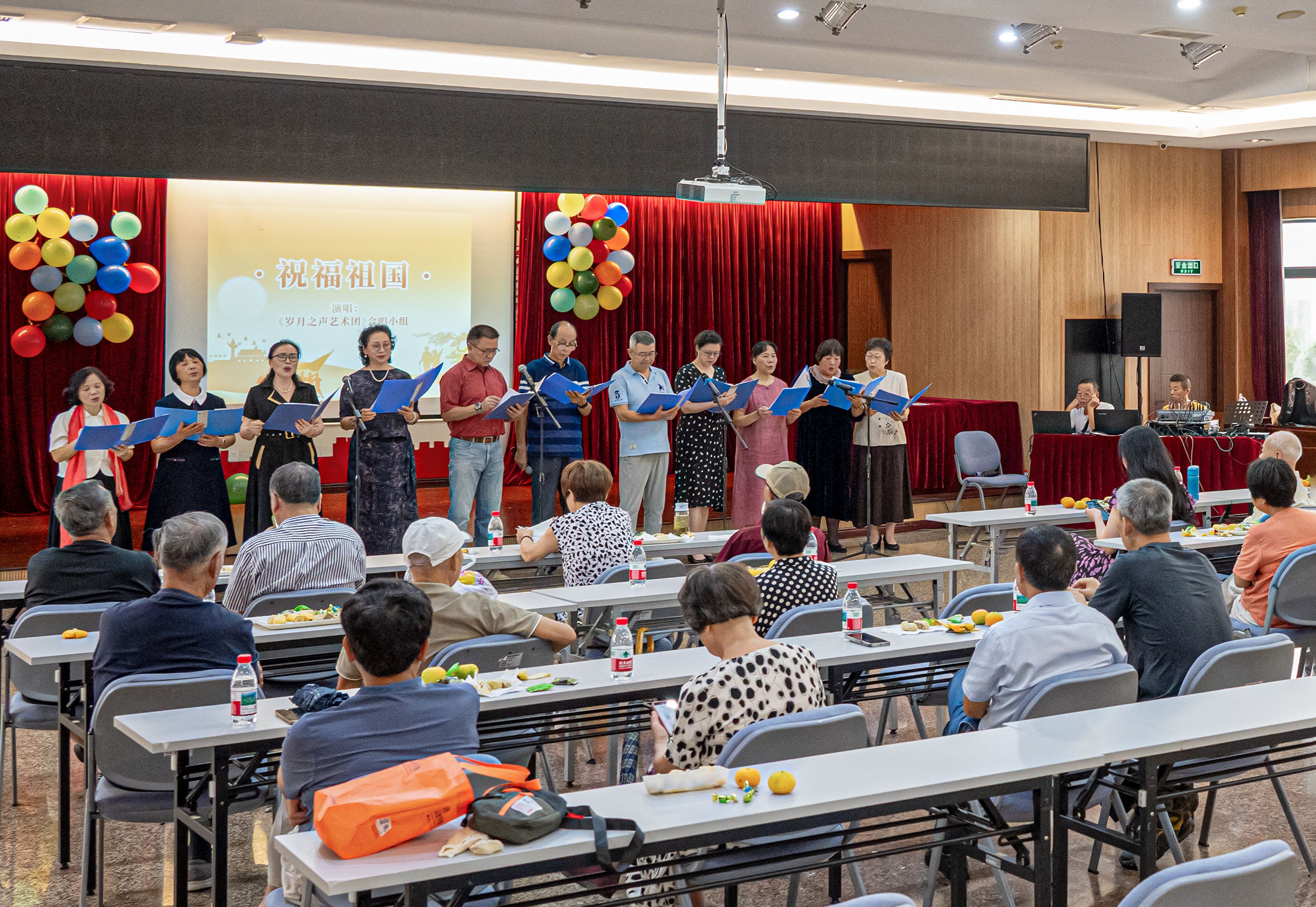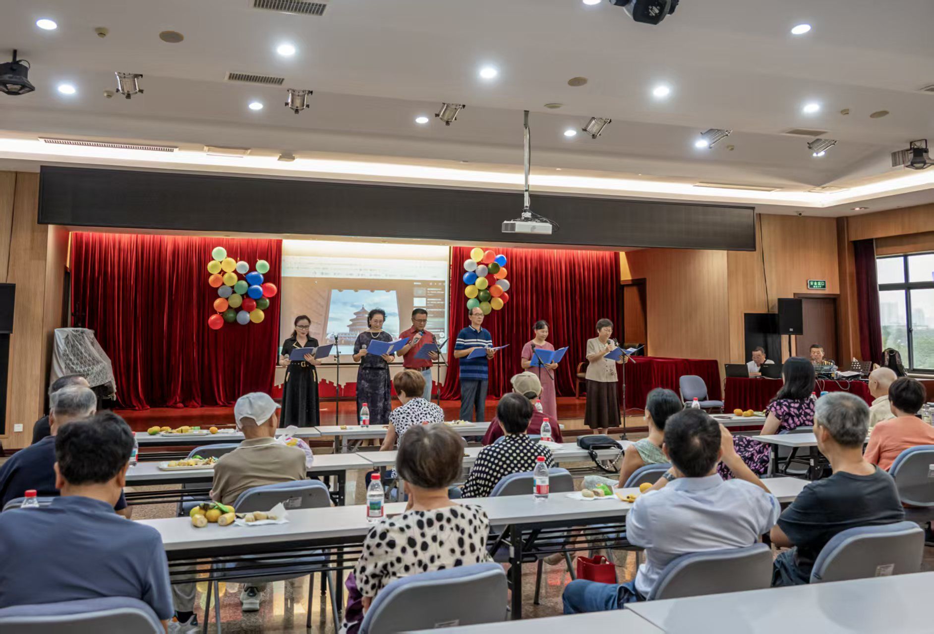 由退休第二党支部组建的《岁月之声》艺术团花了一个多月时间反复排练精心准备。排练期间正值高温酷暑,老同志们不惧路途远近,赶到市老干部活动中心排练,最终呈现了一台精彩的朗诵演唱节目。他们用高亢的歌声赞美伟大的祖国,用经典的古诗词品味中秋团圆的美好和向往,用诚挚的情感传递人间重晚情的温暖和关怀。一个多小时的精彩表演,老同志们掌声不断、笑声迭起,其乐融融。