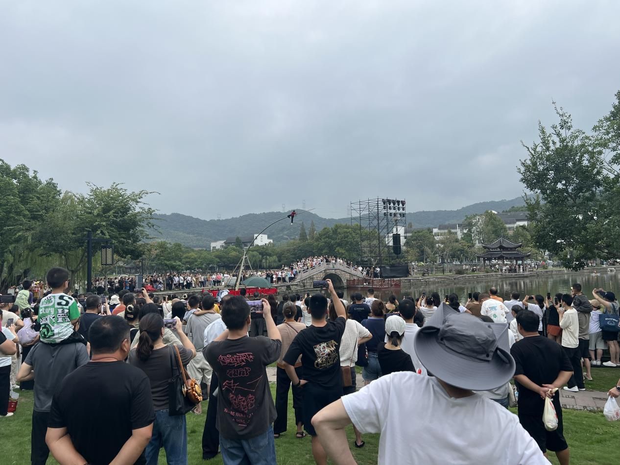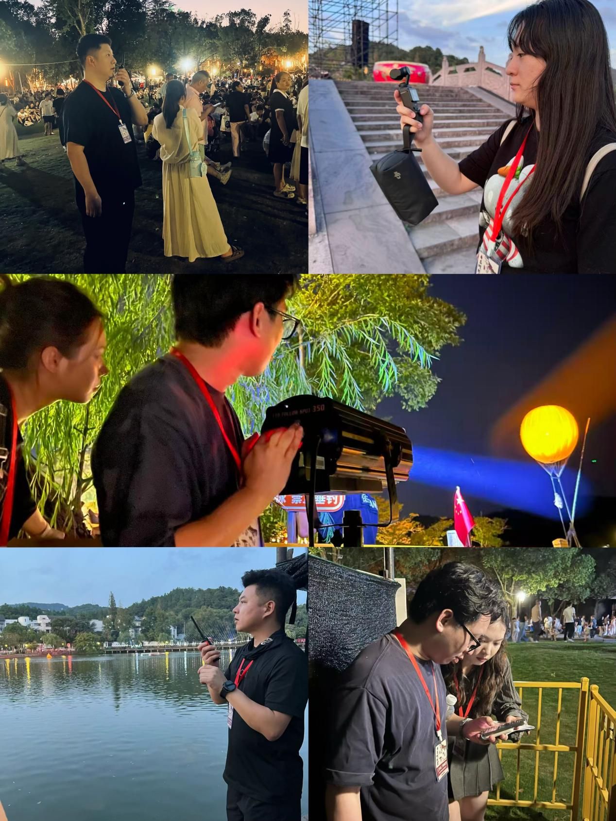 自9月27日设备进场起,在长达十余天的项目落地执行周期中,项目团队每日从早上忙碌到次日凌晨,在民权路、慈湖边等户外场地,顶着连续多日35℃以上的高温酷暑,全力保障活动安全、平稳推进。从千架无人机的搬运、充电、精准升空,到打铁花铁炉铁勺等特种工具的紧急补充;从环湖多点光效的列阵操控,到水上救援船巡逻及下水点周密部署,再到临时节目调用排演,项目团队逐一核对责任到人,点位联通。同时,克服水面和空中环境多变等诸多困难挑战,通过严谨的前期编排、模拟演练、多次彩排,将每一个节目巧妙串联,预判可能出现的任何一处瑕疵与不足,并做好应急预案随时应对。连续8天16场慈湖月夜大秀以家国情与千年慈城作为故事脉络,挑选50多首大气磅礴、婉约灵动的应景曲目进行剪辑扣节奏,掐分卡秒,从演出前的1小时开始的不同时间节点将声光微妙调整进行情绪铺垫,以广播节目无缝衔接的思路与要求运用在实地表演的场景中,让湖边万余名观众在声光电交融的视觉和听感冲击中实现与音乐节奏合拍共鸣。每晚两轮约60分钟的沉浸式大秀零失误,最终圆满完成各项执行任务。