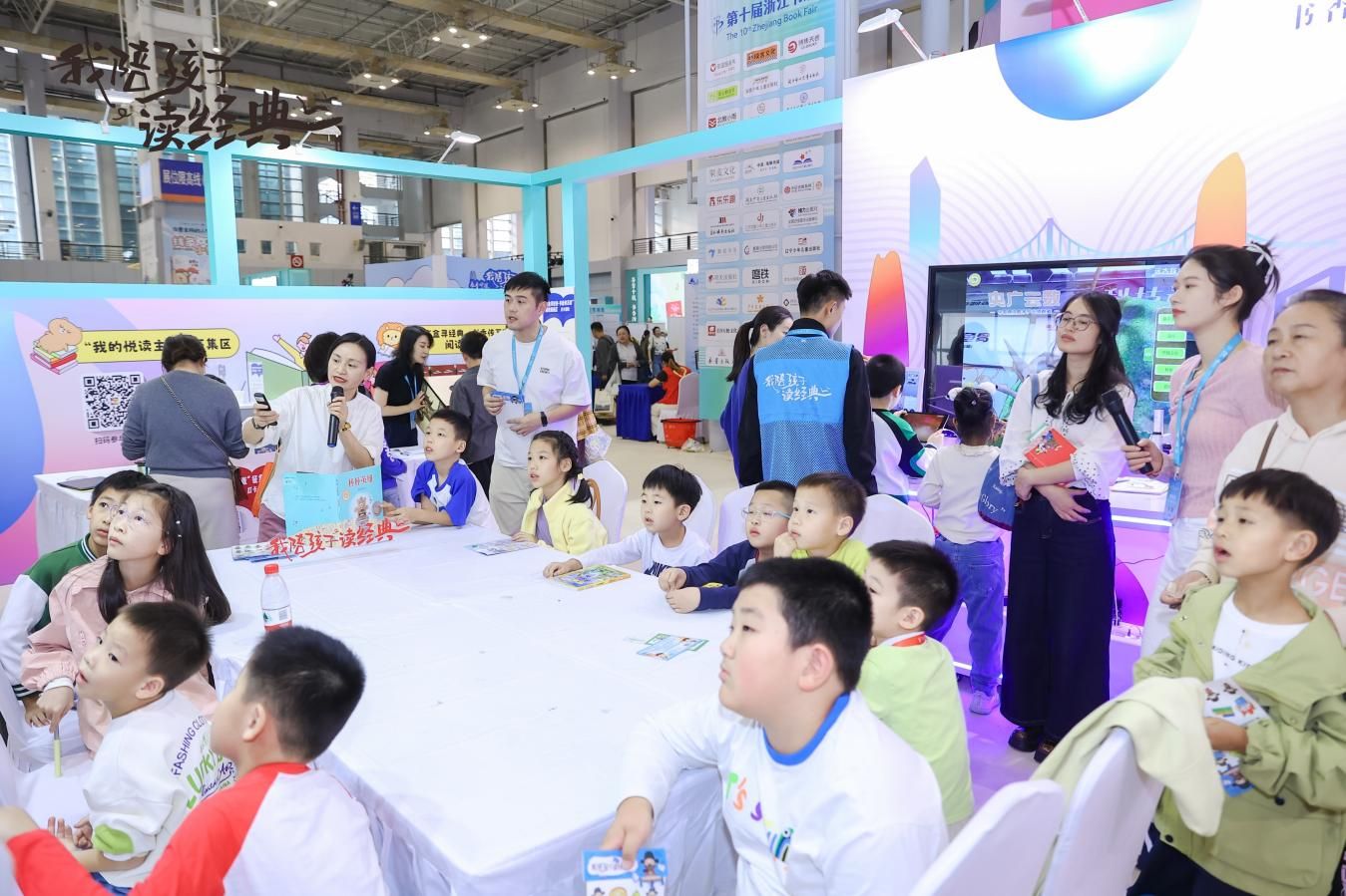 10月25日下午,现场还举办了两场“书香宁波日·经典伴读时”分享会,20组亲子家庭跟着阅读领航人菁菁老师踏上了一场神奇的绘本之旅,走进一个又一个童话世界。除此之外,现场还设置了各区(县、市)特色阅读品牌展示及“我陪孩子读经典”系列活动回顾环节,全方位呈现书香宁波阅读生态。此外,“阁主大大”不定时巡馆,与孩子们亲切互动、合影,带来了诸多意外惊喜。