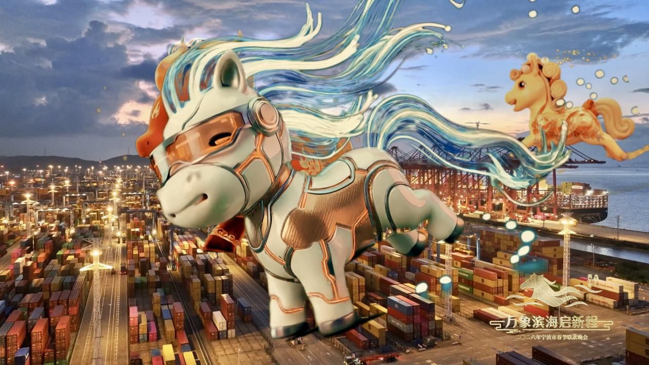 《宁波春晚总片头》以“马”为贯穿全片的文化符号,通过实景拍摄与CG动画、AI合成技术,打造一部充满热烈、祥和、团圆、温暖、奋进气氛的春晚片头。五匹“福驹”从历史古韵、城市地标与非遗技艺中“跃然而出”,最终汇聚成“万马归心,奔赴团圆”的壮丽图景,展现宁波的深厚底蕴、时代活力与家园温情。